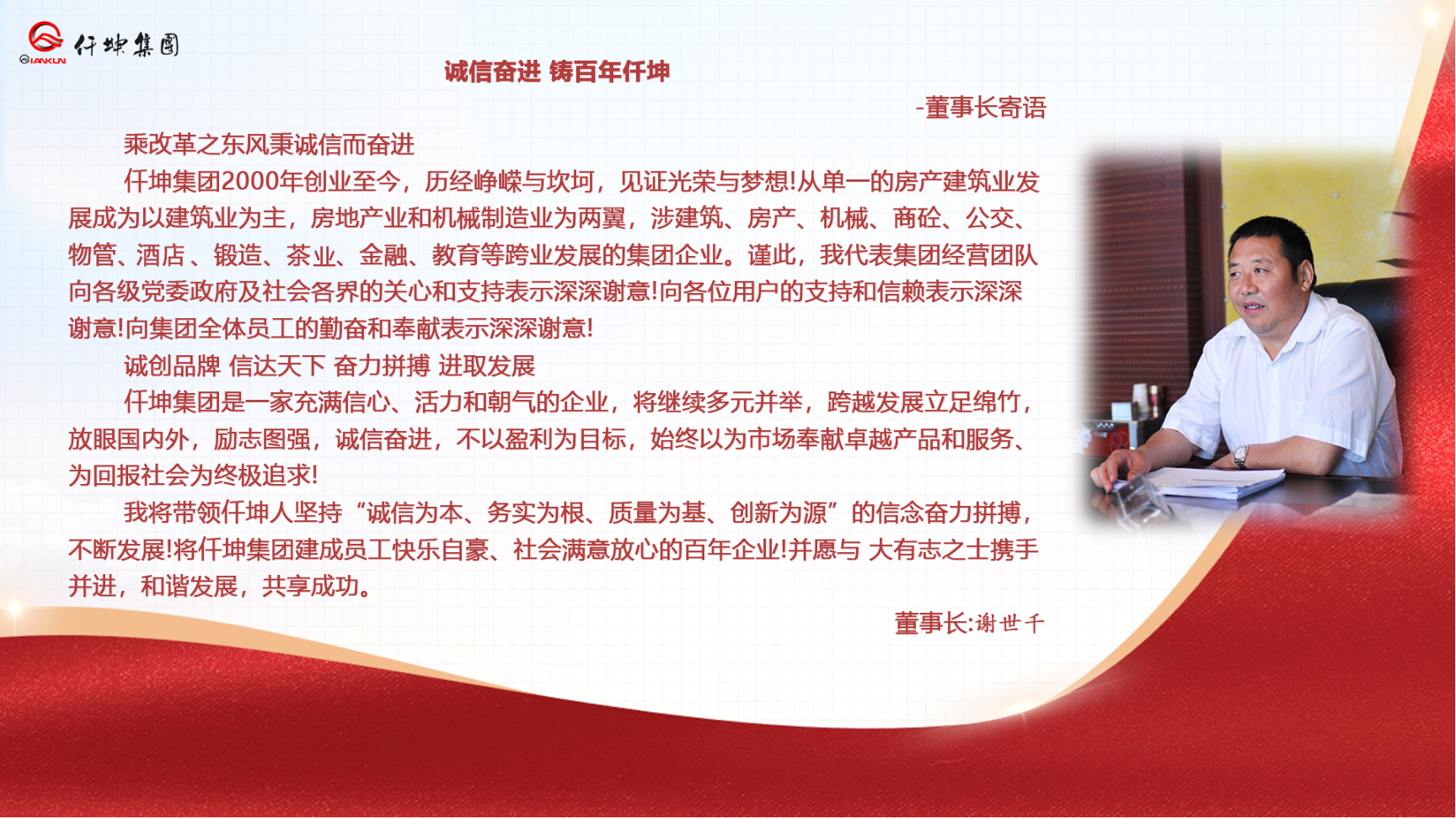 董事長致辭 關(guān)于仟坤 企業(yè)榮譽 企業(yè)愿景 企業(yè)文化 團隊架構(gòu)