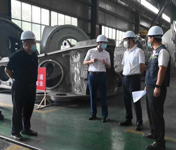 9月30日下午,中共綿竹市委書記王宏一行到仟坤集團鑫坤機械檢查指導(dǎo)節(jié)前安全生產(chǎn)工作及疫情防控措施落實情況。集團董事長謝世千及黨委書記、副總裁周述軍陪同檢查。王宏書記一行首先來到鑫坤機械重機車間實地查看車間運行情況,聽取了周述軍同志關(guān)于車間安全環(huán)保管理、疫情防控等方面工作匯報。