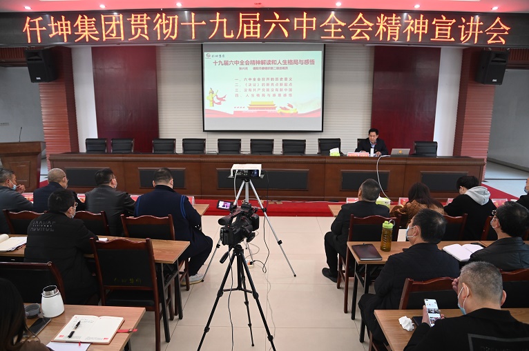 為深入學(xué)習(xí)貫徹黨的十九屆六中全會(huì)精神,進(jìn)一步深刻領(lǐng)會(huì)全會(huì)精神的豐富內(nèi)涵和核心要義。12月1日上午,仟坤集團(tuán)組織召開(kāi)學(xué)習(xí)貫徹十九屆六中全會(huì)精神宣講會(huì),特邀請(qǐng)到德陽(yáng)市二級(jí)巡視員張興鴻專題授課。德陽(yáng)市委組織部四級(jí)調(diào)研員、組織四科科長(zhǎng)莫檸綪,綿竹市委組織部“兩新”工委專職副書記王興平,綿竹高新區(qū)黨群工作部副部長(zhǎng)黃銳,集團(tuán)黨建指導(dǎo)員張英到會(huì)指導(dǎo)工作,集團(tuán)董事長(zhǎng)謝世千、總裁謝澤波以及集團(tuán)黨委委員、全體黨員和中高層管理人員近200余人參與學(xué)習(xí)。會(huì)議由集團(tuán)黨委書記、副總裁周述軍主持。