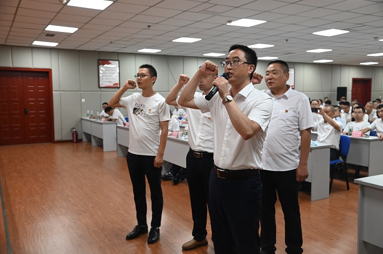 ▲集團(tuán)黨委書記周述軍帶領(lǐng)預(yù)備黨員宣誓▲