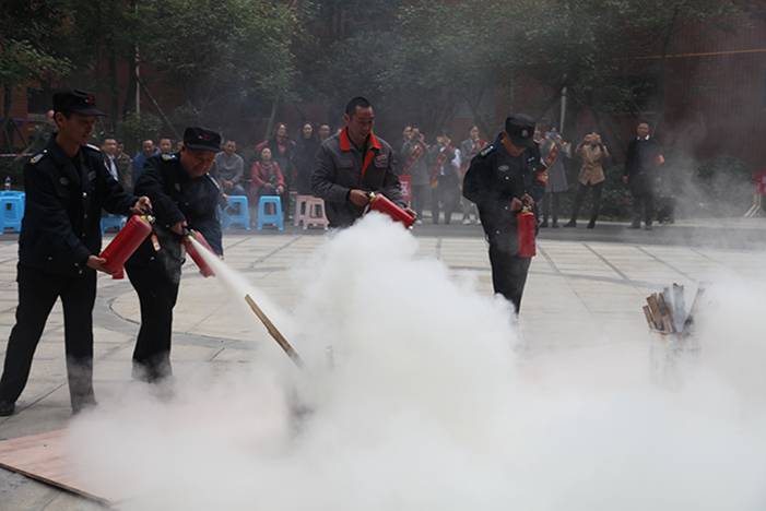 演習開始前,物業(yè)副經(jīng)理吳幫斌給大家講解了此次演習的注意事項及應對措施。伴隨著一聲聲警報聲,從一居民樓冒出陣陣濃煙,消防人員立刻緊張有序的進入“火災現(xiàn)場”進行傷員、財產(chǎn)搶救,面對“熊熊烈火”,大家都表現(xiàn)得十分積極,臨危不亂,按照滅火的步驟和方法將火堆燃起的濃煙大火迅速撲滅。接下來吳經(jīng)理給業(yè)主們講解如何使用滅火器。在一寬敞的空地上用鐵桶燃火,工作人員依次演示如何滅火,在場的業(yè)主們都踴躍上場嘗試。緊接著防暴反恐演習開始,一名“歹徒”手拿“兇器”闖入小區(qū),此時對業(yè)主們安全造成了威脅,小區(qū)保衛(wèi)人員立即拉響警報,并手持鋼叉、防爆盾、棍棒等防爆工具,短短一分鐘內(nèi)就制服“歹徒”奪下“兇器”,全小區(qū)無一人員“傷亡”。至此,警報解除。