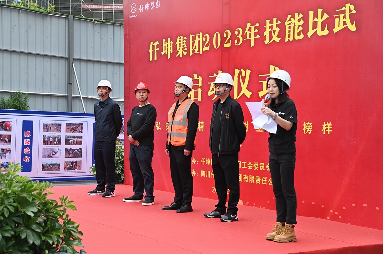 集團(tuán)為加強(qiáng)各公司高技能人才隊(duì)伍建設(shè),提高技能操作隊(duì)伍素質(zhì),推動(dòng)職業(yè)技能大賽和技術(shù)比武活動(dòng)有效開展,為鼓勵(lì)廣大員工立足崗位、創(chuàng)先爭(zhēng)優(yōu),造就有思想、有技術(shù)、敢創(chuàng)新的技能人才隊(duì)伍,營(yíng)造“練中學(xué)、學(xué)中干”的良好學(xué)習(xí)工作氛圍。5月8日上午,由集團(tuán)工會(huì)主辦,仟坤建設(shè)承辦的“仟坤集團(tuán)2023年技能比武啟動(dòng)儀式”在仟坤建設(shè)天朗五期項(xiàng)目部隆重啟動(dòng)。集團(tuán)副董事長(zhǎng)甯福富,集團(tuán)黨委書記、副總裁周述軍,集團(tuán)副總裁趙新強(qiáng),各分公司總經(jīng)理及仟坤建設(shè)技能比武的裁判員和比賽選手參與了啟動(dòng)儀式。啟動(dòng)儀式由集團(tuán)黨委副書記、人力資源部部長(zhǎng)董云龍主持。