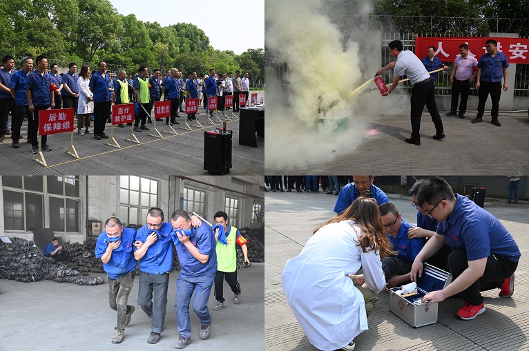 “報(bào)告總指揮,上午10點(diǎn)熱處理車間因電路問(wèn)題出現(xiàn)火災(zāi)”演練在報(bào)告聲中拉開序幕。警戒組、疏散組、救護(hù)組、搶險(xiǎn)組、救援組6支小分隊(duì)迅速展開行動(dòng)。警戒組持警戒帶對(duì)現(xiàn)場(chǎng)進(jìn)行封控;搶險(xiǎn)組持滅火器沖入火場(chǎng),一拉、二瞄、三壓住,一氣呵成撲滅大火;疏散組持彩色發(fā)光棒,引導(dǎo)被困職工捂住口鼻脫離火場(chǎng);救援組為及時(shí)受傷職工處理傷口...各小組配合默契,整體流程銜接流暢,展現(xiàn)出了參演人員的卓越團(tuán)隊(duì)協(xié)作能力和在緊急情況下的應(yīng)對(duì)能力和反應(yīng)力?,F(xiàn)場(chǎng)所有參演及觀摩人員還對(duì)進(jìn)行了滅火的實(shí)際操作。
