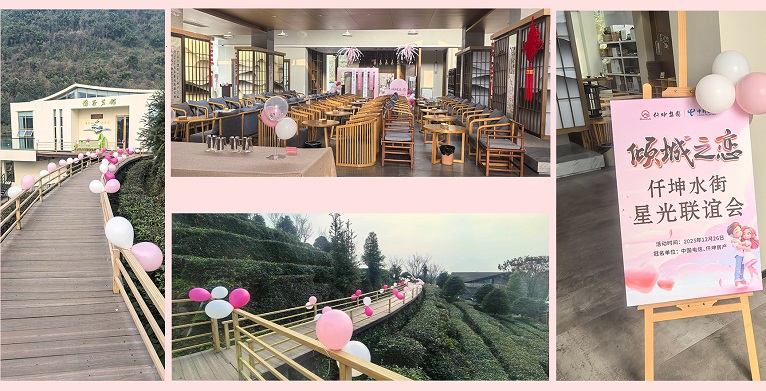 當(dāng)青春的心邂逅趙坡茶仙谷如詩如畫般的浪漫,當(dāng)“竹”夢(mèng)新征程的豪情點(diǎn)燃廣大青年朋友內(nèi)心對(duì)事業(yè)和美好生活的憧憬,為積極響應(yīng)中央、四川省、德陽及綿竹市委市政府對(duì)青年交友的高度重視,仟坤集團(tuán)黨委于12月26日在集團(tuán)茶仙谷舉辦了一場(chǎng)以“傾城之戀.仟坤水街星光聯(lián)誼會(huì)”為主題的交友活動(dòng)。共青團(tuán)綿竹市委、仟坤集團(tuán)、綿竹市人民醫(yī)院、中國(guó)電信綿竹支公司共60余名優(yōu)秀青年共話情誼、互動(dòng)交流。