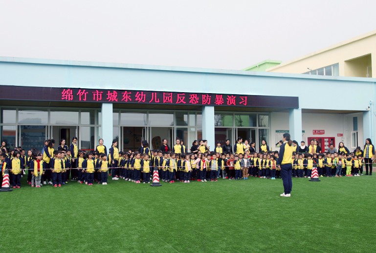 為切實(shí)做好反恐防暴安全工作,結(jié)合"119宣傳日",城東幼兒園于11月9日下午在園區(qū)開展了反恐防暴和消防演習(xí)。特邀綿竹市公安局特巡警大隊(duì)和東北派出所到城東幼兒園進(jìn)行反恐防暴演習(xí)指導(dǎo),演習(xí)前先對(duì)園區(qū)安保人員進(jìn)行了反恐應(yīng)急處理講解。